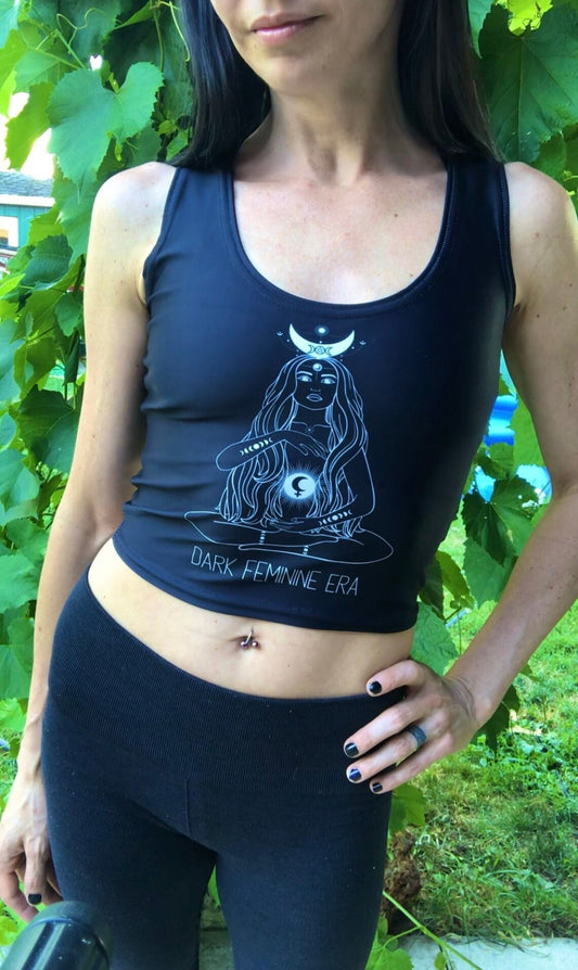 Dark Feminine Era Occult Witchy Lilith Triple Moon Pentacle Crop Top