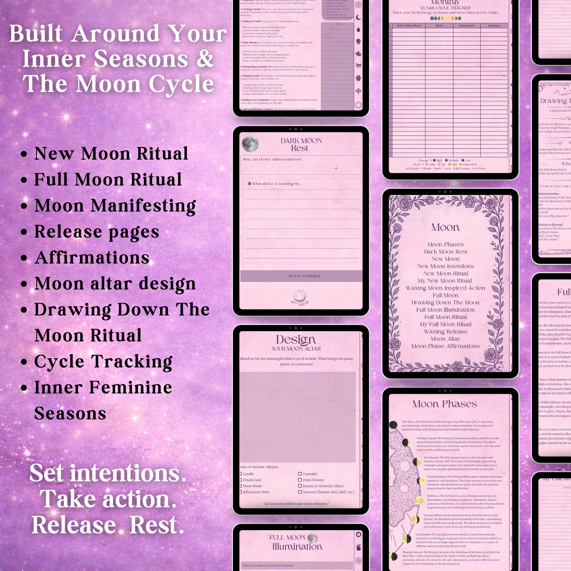 Step into your magic with a sacred digital space designed to hold your rituals, reflections, lunar cycles, and spiritual growth — all in one beautifully organized system.