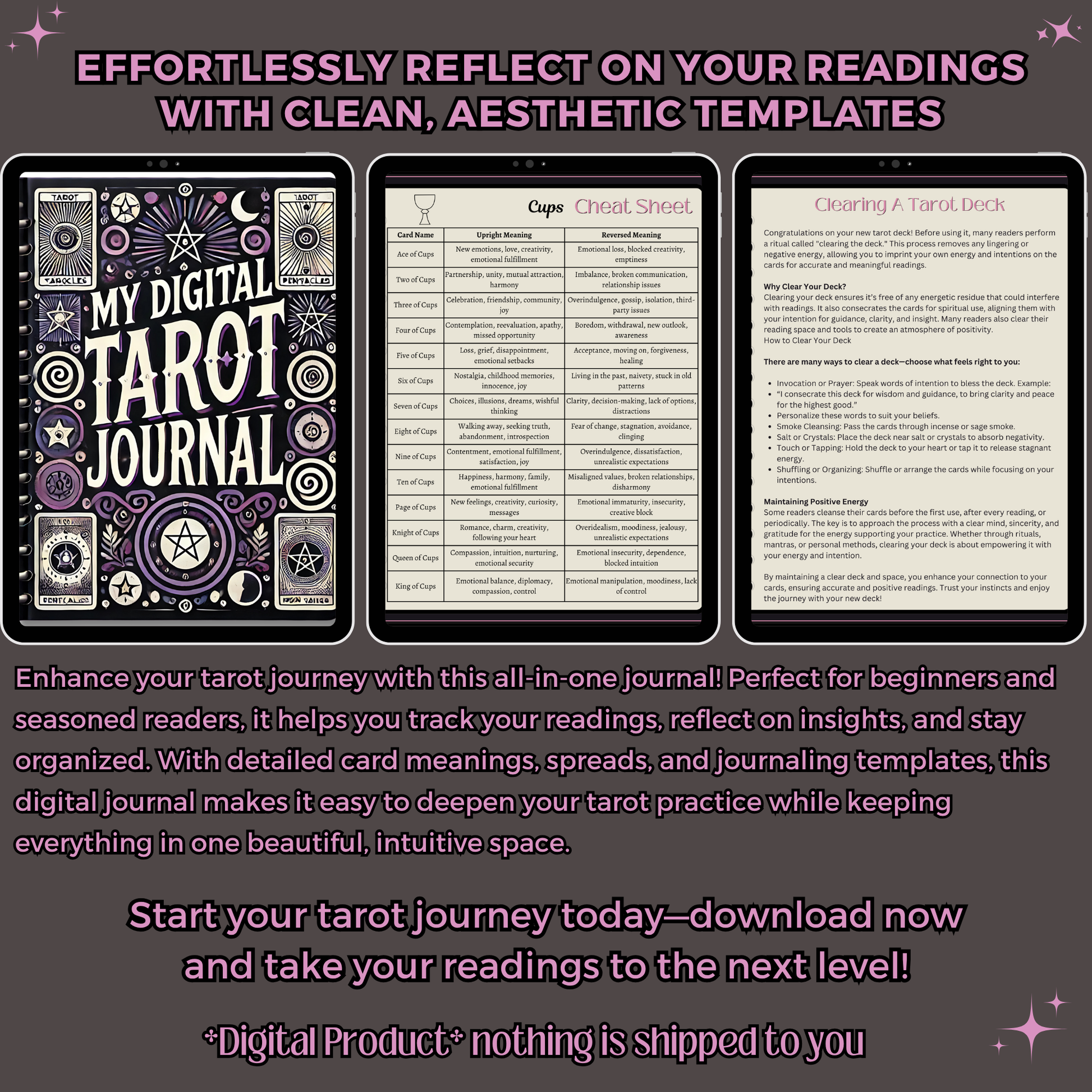 Download your Digital Tarot Journal and start recording your readings, learning the cards, and deepening your connection with intuition—all in one beautiful, interactive space.