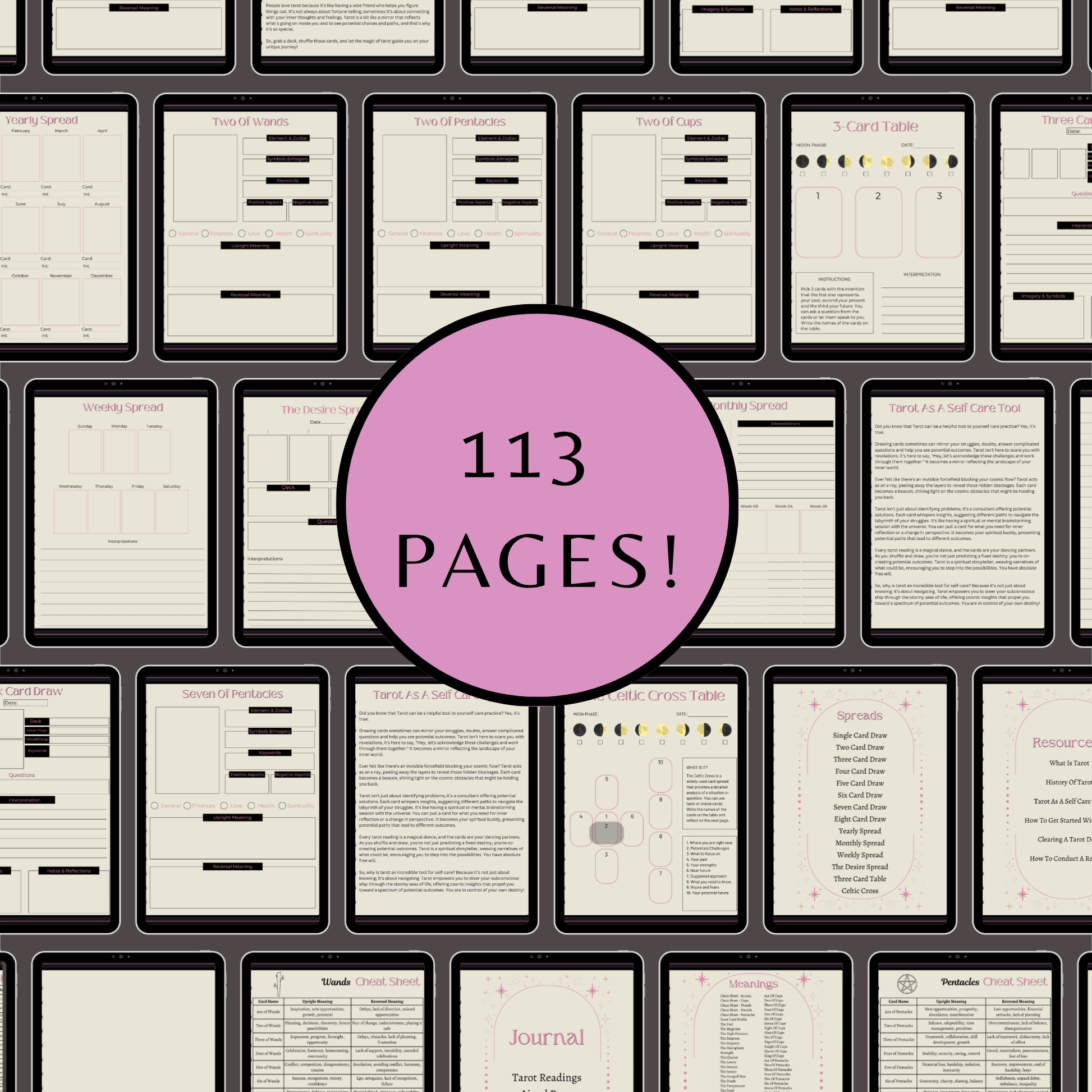 Bring your tarot practice to life with this interactive digital journal designed to inspire reflection, intuition, and growth. Whether you’re just starting your tarot journey or you’ve been reading for years, this beautifully crafted 113-page journal helps you stay organized, mindful, and connected to your cards.