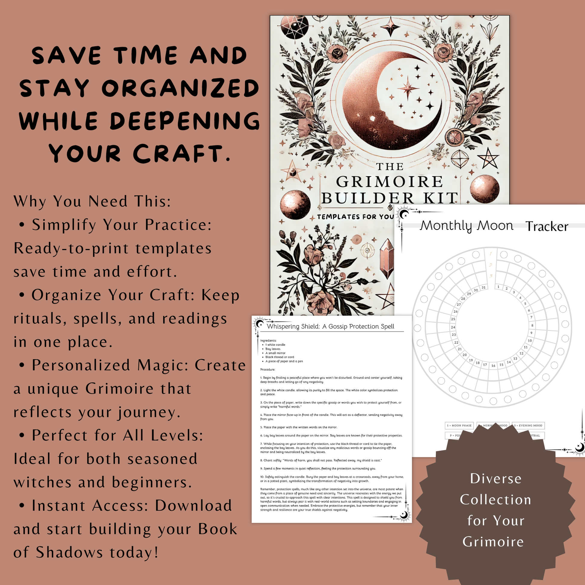 Bring your magic to life with the Grimoire Builder Kit—download your templates today and start creating a personalized and inspiring spiritual tool!