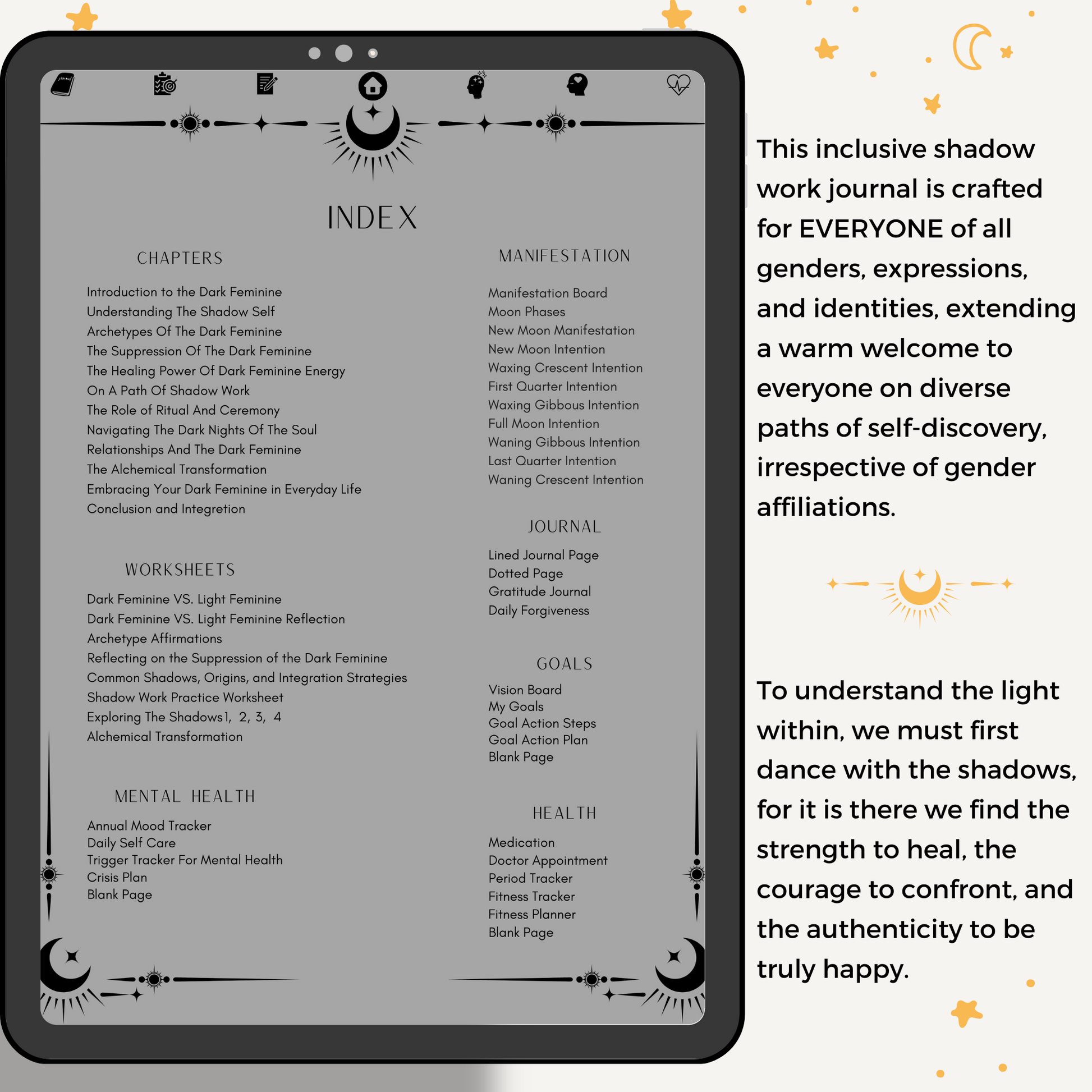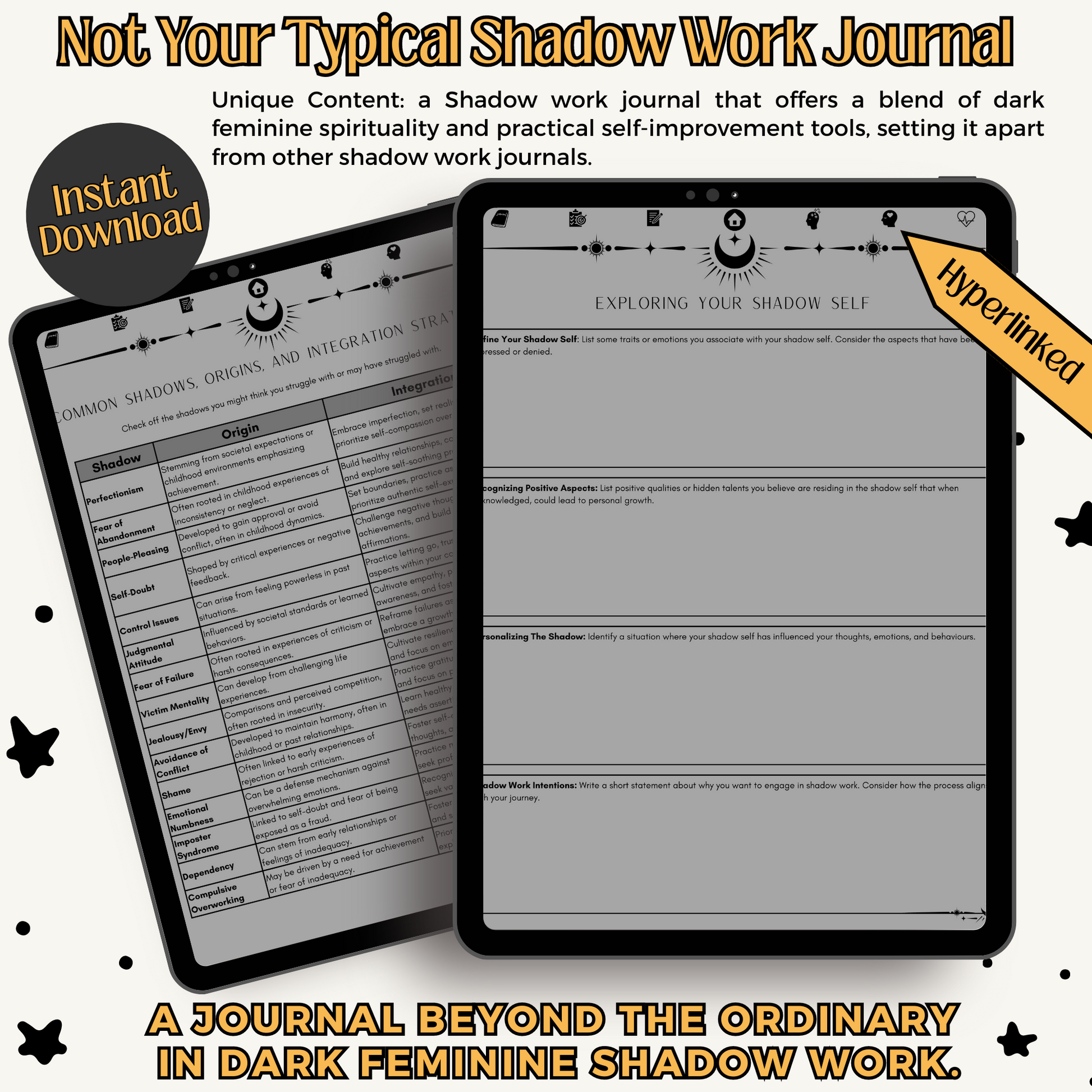Shadow Work Journal Workbook, Self-Care Journal Pages, Mental Health Tracker, Witchy Planner, Dark Feminine Spiritual Journal for GoodNotes