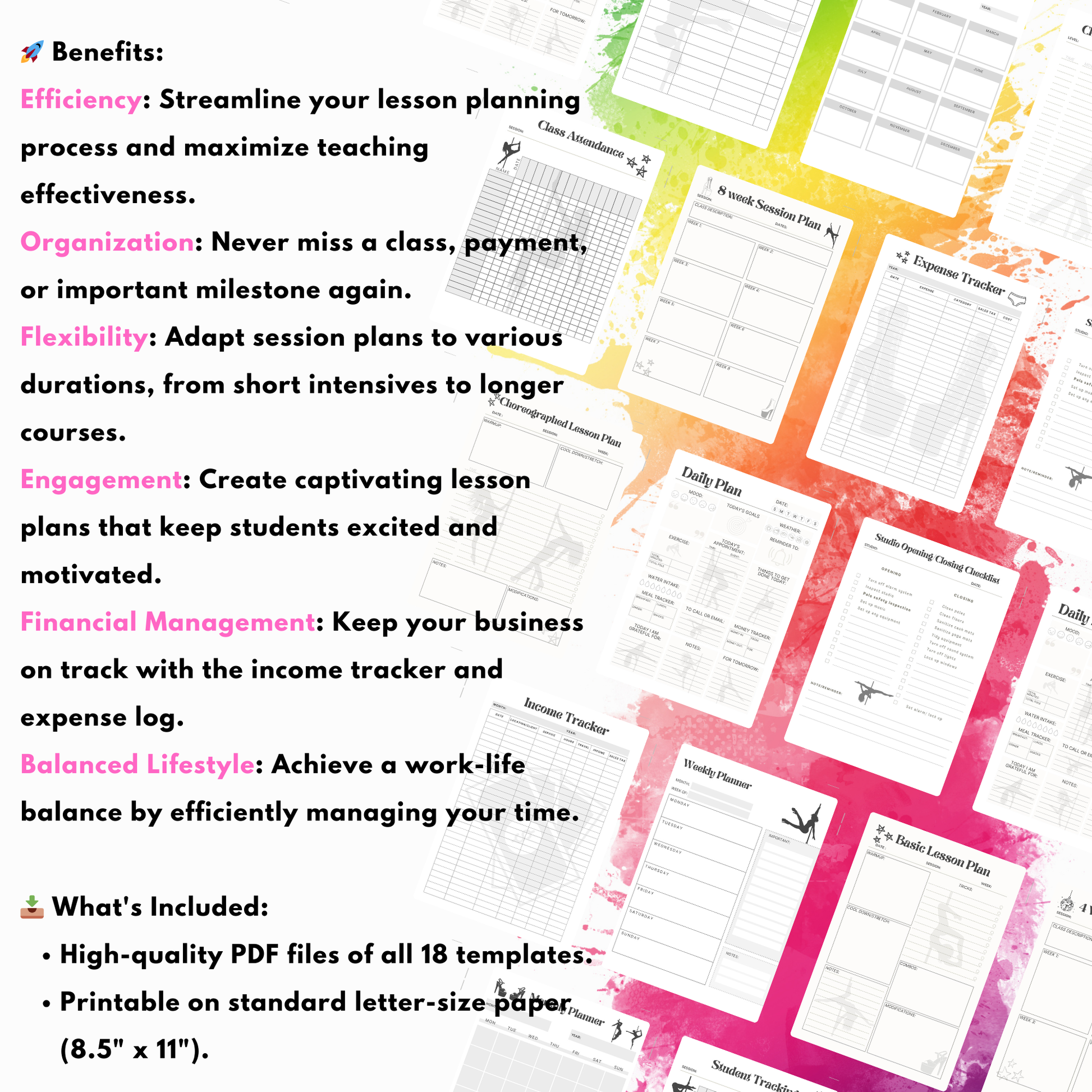 Elevate your pole dance fitness classes with “The Ultimate Pole Dance Fitness Instructor Planner” PRINTER VERSION – a digital download meticulously crafted by Sheena Marie, a passionate pole fitness instructor with over 10 years of experience. This 18-page printable planner PDF is designed to help you streamline your teaching process, plan your classes with precision, and track your students’ progress efficiently.
